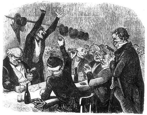 From drinking songs to patriotic hymns, the music at these goguettes was often performed by groups with names like “The Children of Bacchus.” The police stayed close at hand, because they rightly suspected that the creative freedom available in these establishments would foment revolution: political free-thinkers and anarchists gathered in the goguettes and other taverns in the area.